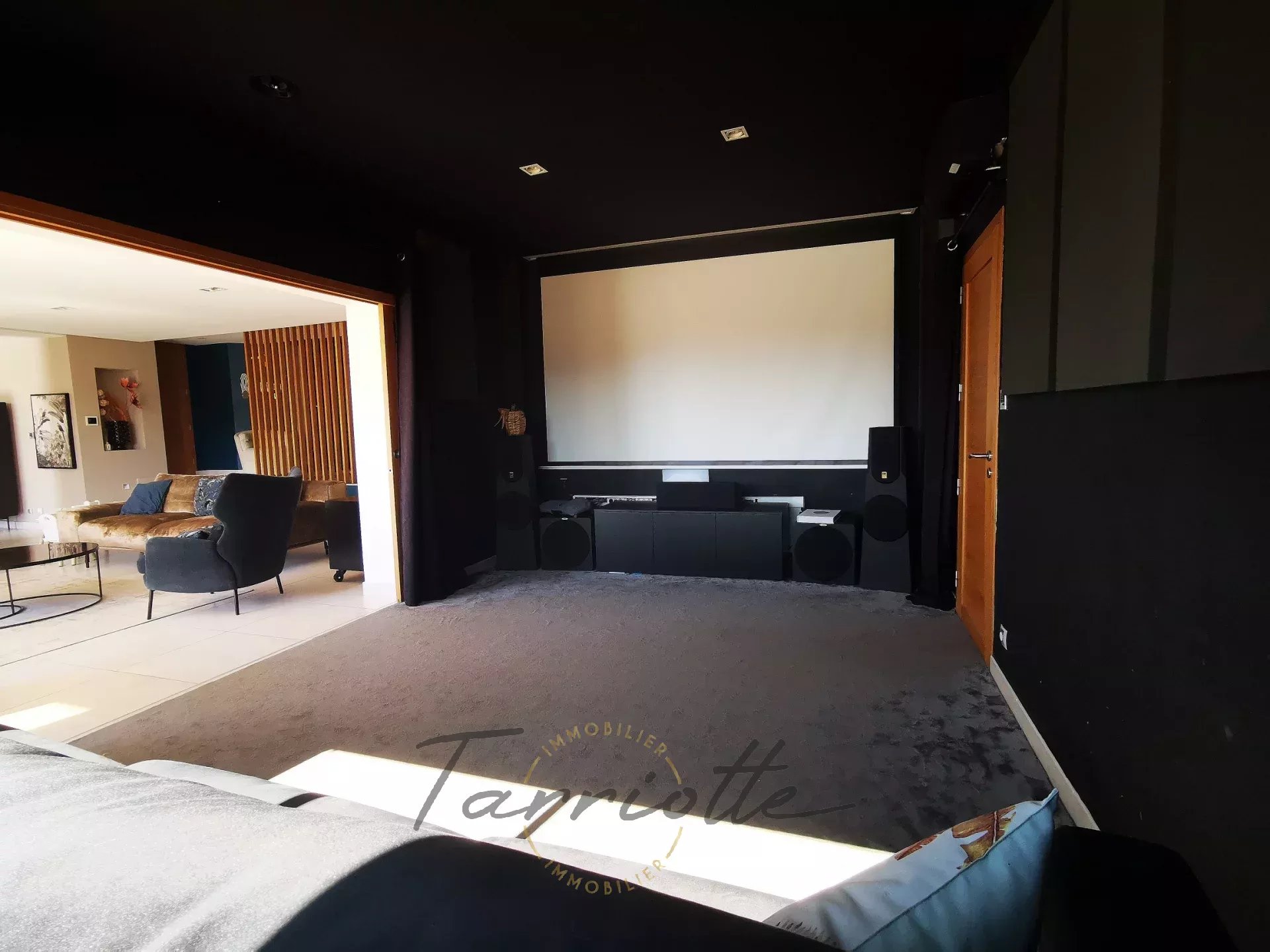 1 Cinéma 20 m²- Côté est grand espace cinéma entièrement équipé avec rétroprojecteur, écran, baffle, mousse d’insonorisation, Dolby Atmos ulimea 7.1.4 avec porte coulissante
