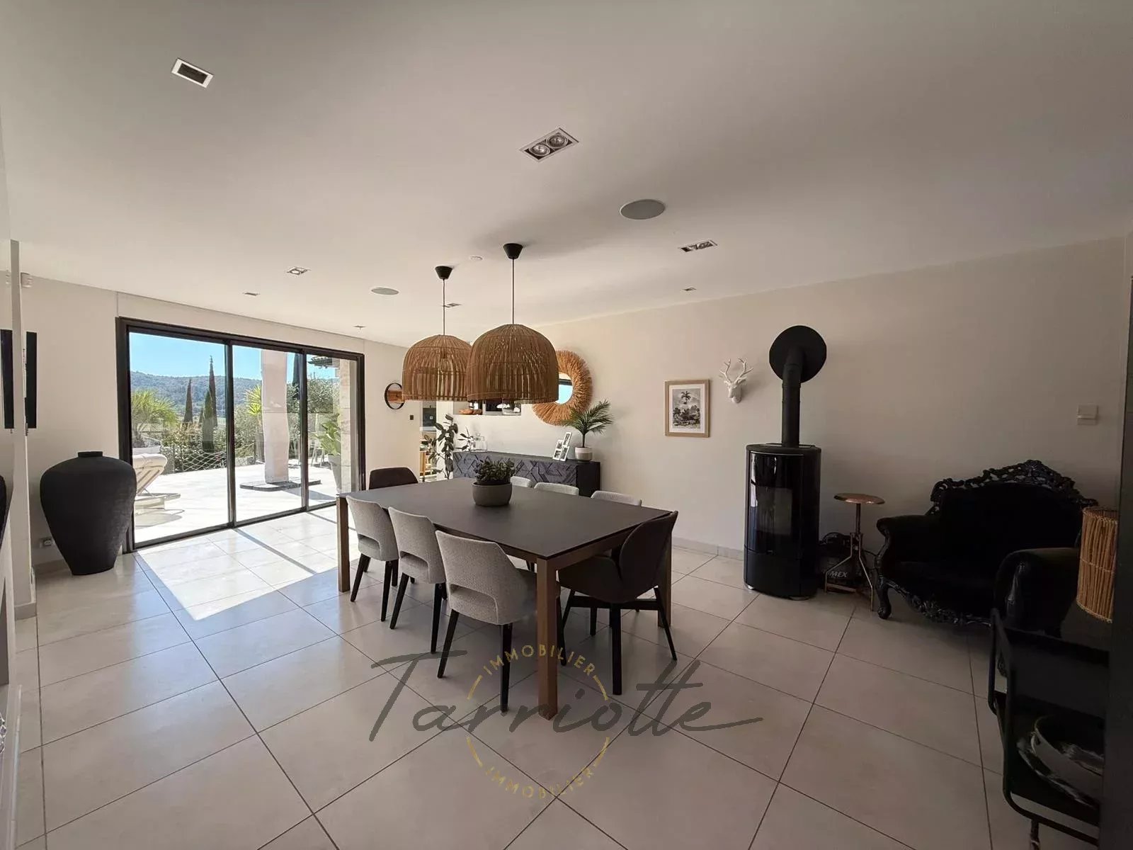 1 Salle à manger 30 m²- Spacieux salon ouvert par une baie vitrée sur la terrasse côté sud avec poële à granules