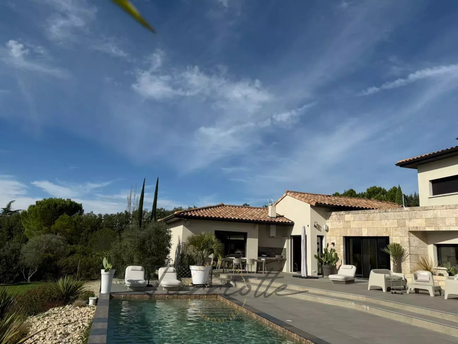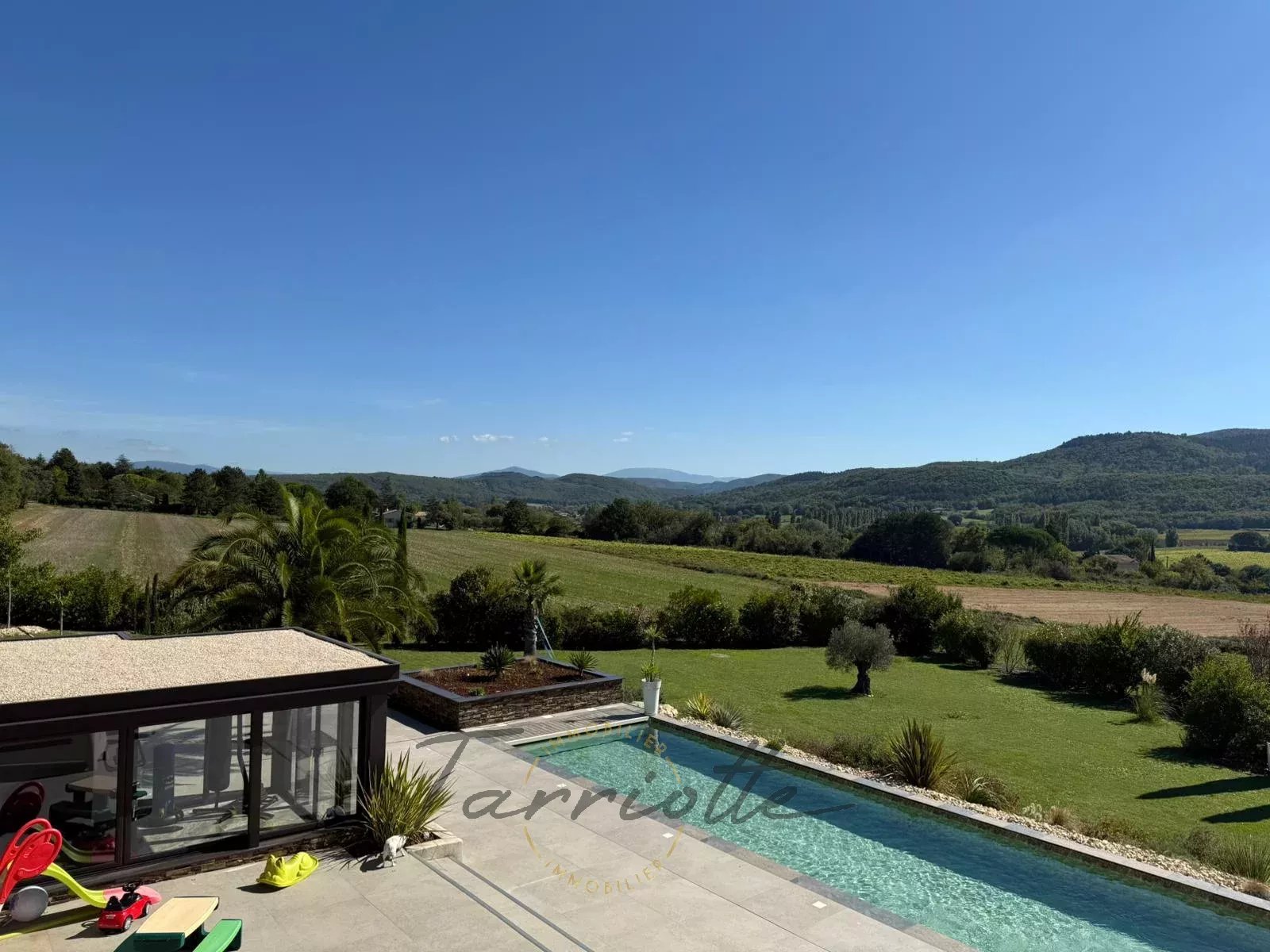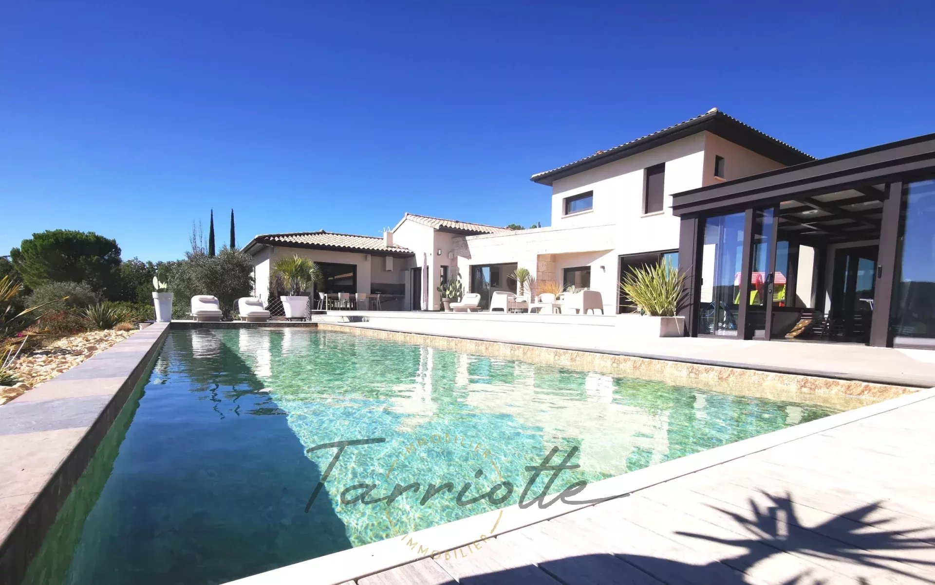 1 Véranda 27 m²Espace climatisé, côté piscine avec volets roulants électriques