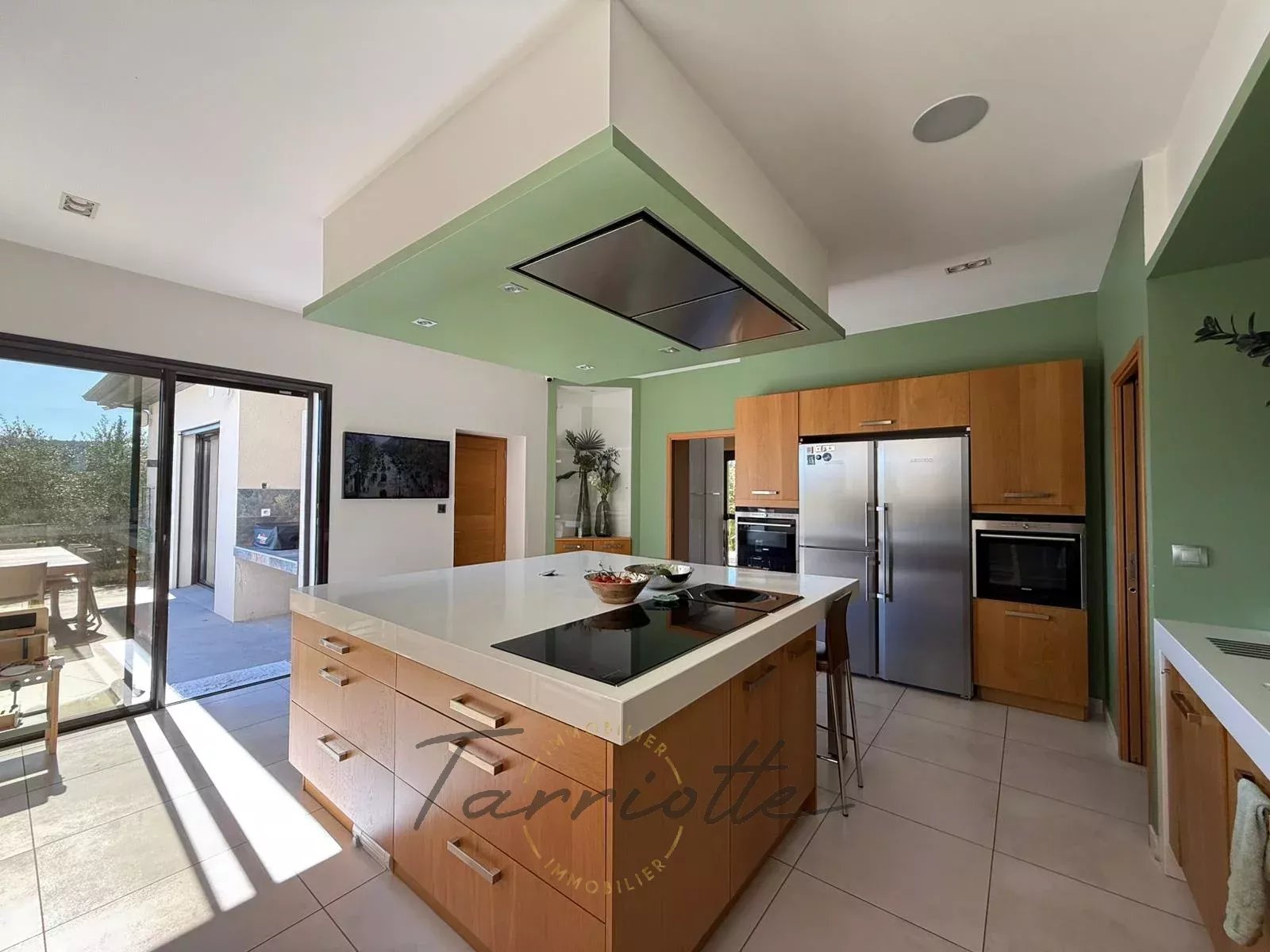 1 Cuisine 31 m²Accès sur une grande cuisine Arthur Bonnet entièrement meublée et équipée avec ilot central plus une arrière-cuisine 8 m² avec évier équipé d’un broyeur américain