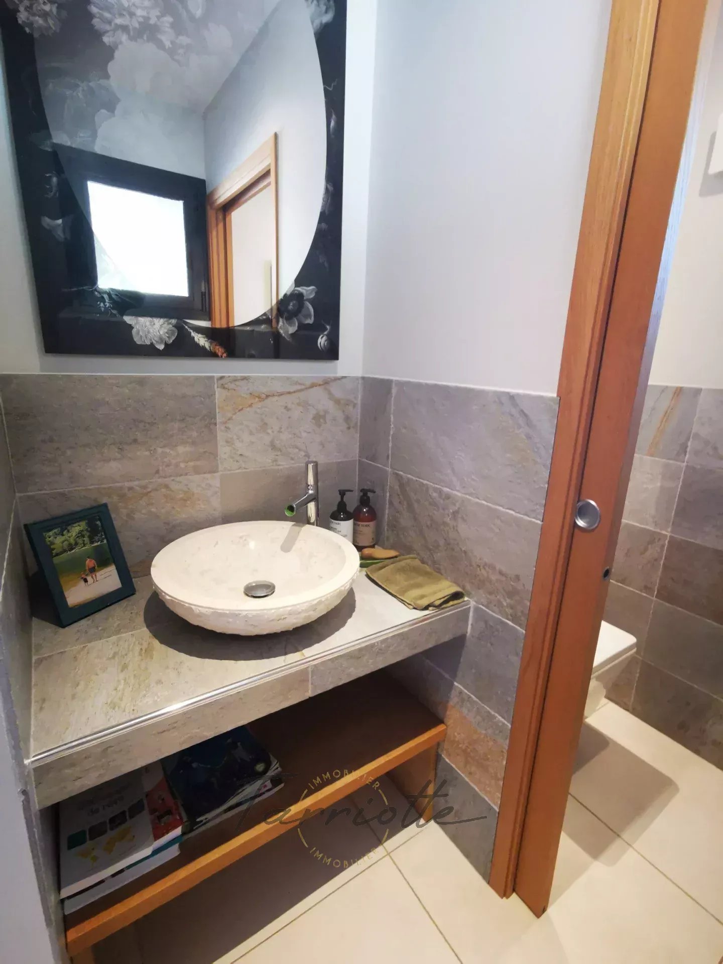 1 Hall d'entrée 6 m²- Hall d’entrée équipée d’une porte blindée 3 points, avec des espaces de rangement lumineux. - Espace toilette 3 m² avec hall équipé d’un lave main et wc suspendu.
