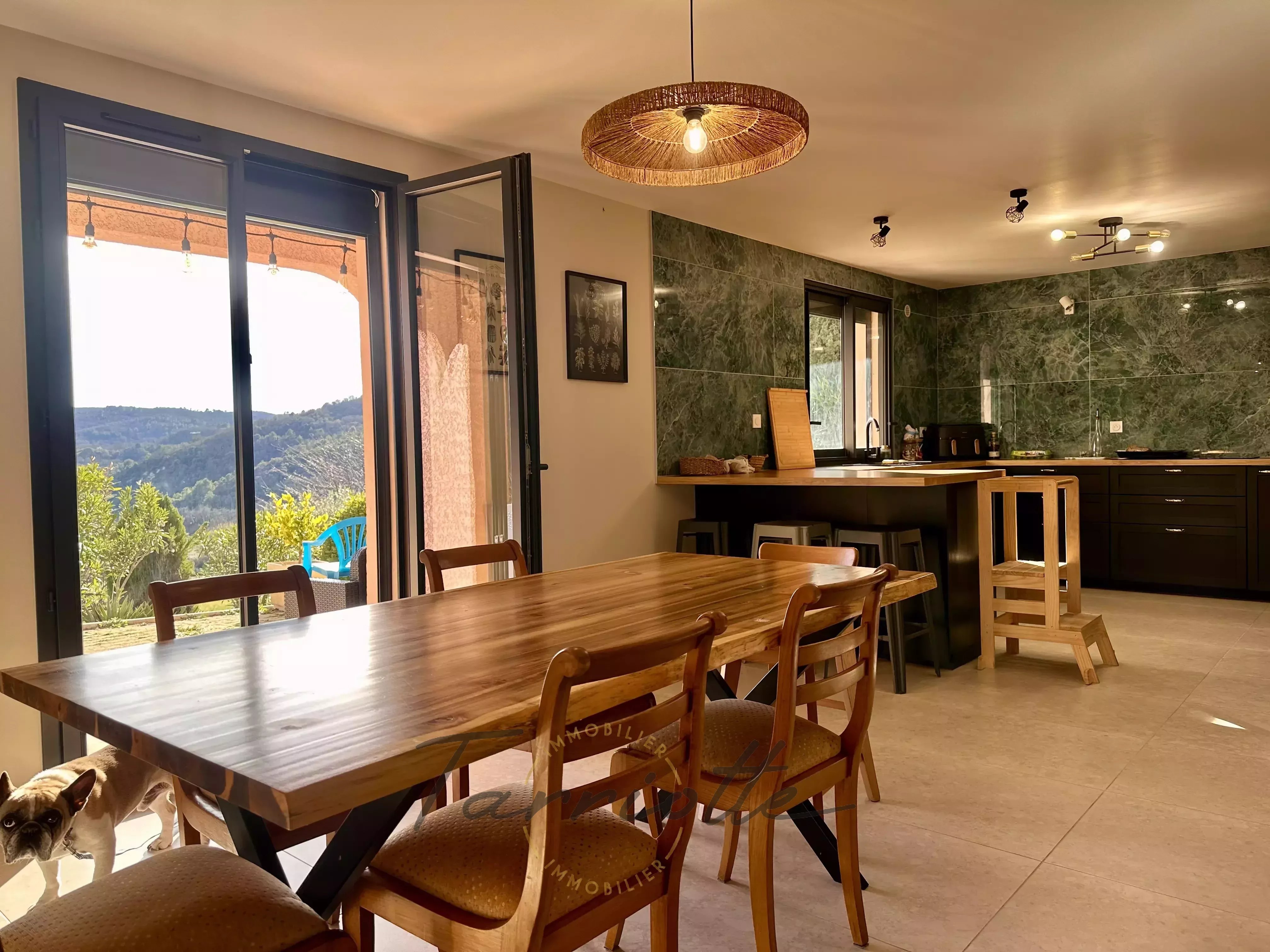 LE TEIL - Villa de 133 m² bénéficiant d’un environnement privilégié, au calme, avec vue dégagée sur les collines environnantes. Implantée sur une parcelle de 2 487 m² entièrement clôturée, elle se compose d’une cuisine / salle à manger de 29 m² et d’un salon de 30 m². L’espace nuit comprend trois chambres de 10 à 15 m², celle de 15 m² dispose d’un accès direct à la terrasse, ainsi qu’un bureau. Salle de bains de 6 m² et WC séparé. Garage de 45 m². Un bien offrant volumes, tranquillité et cadre naturel recherché. Classe Energie : C - Ref : 10775 - Prix : 378 000 € HAI Honoraires agence inclus - Tel : 06 25 02 90 40 Victor TARRIOTTE