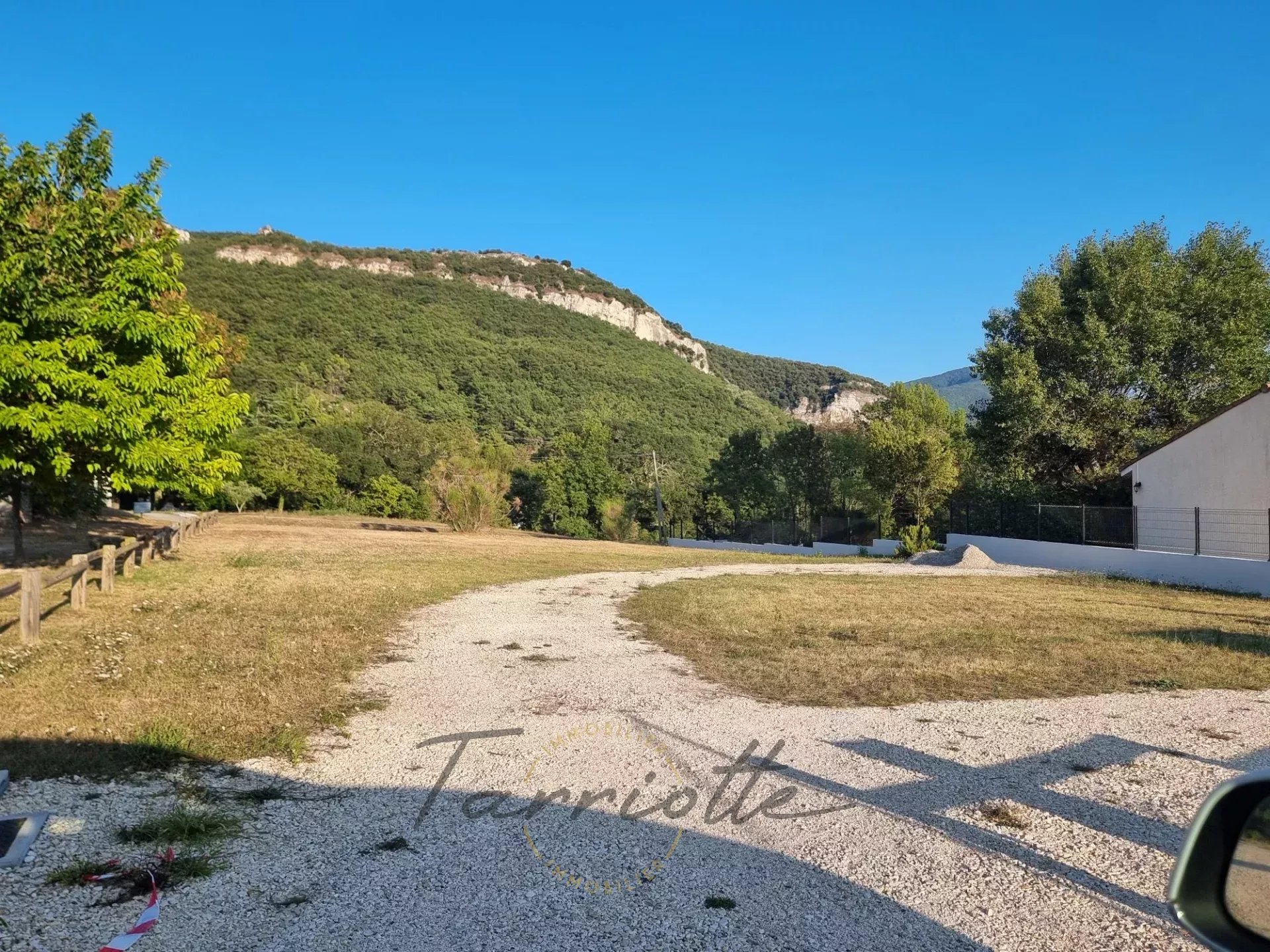 La Bégude de Mazenc- Belle parcelle de terrain constructible et viabilisée de 1192 m² avec PC en cours de validité, prévoir 1 assainissement autonome. Réf 10657